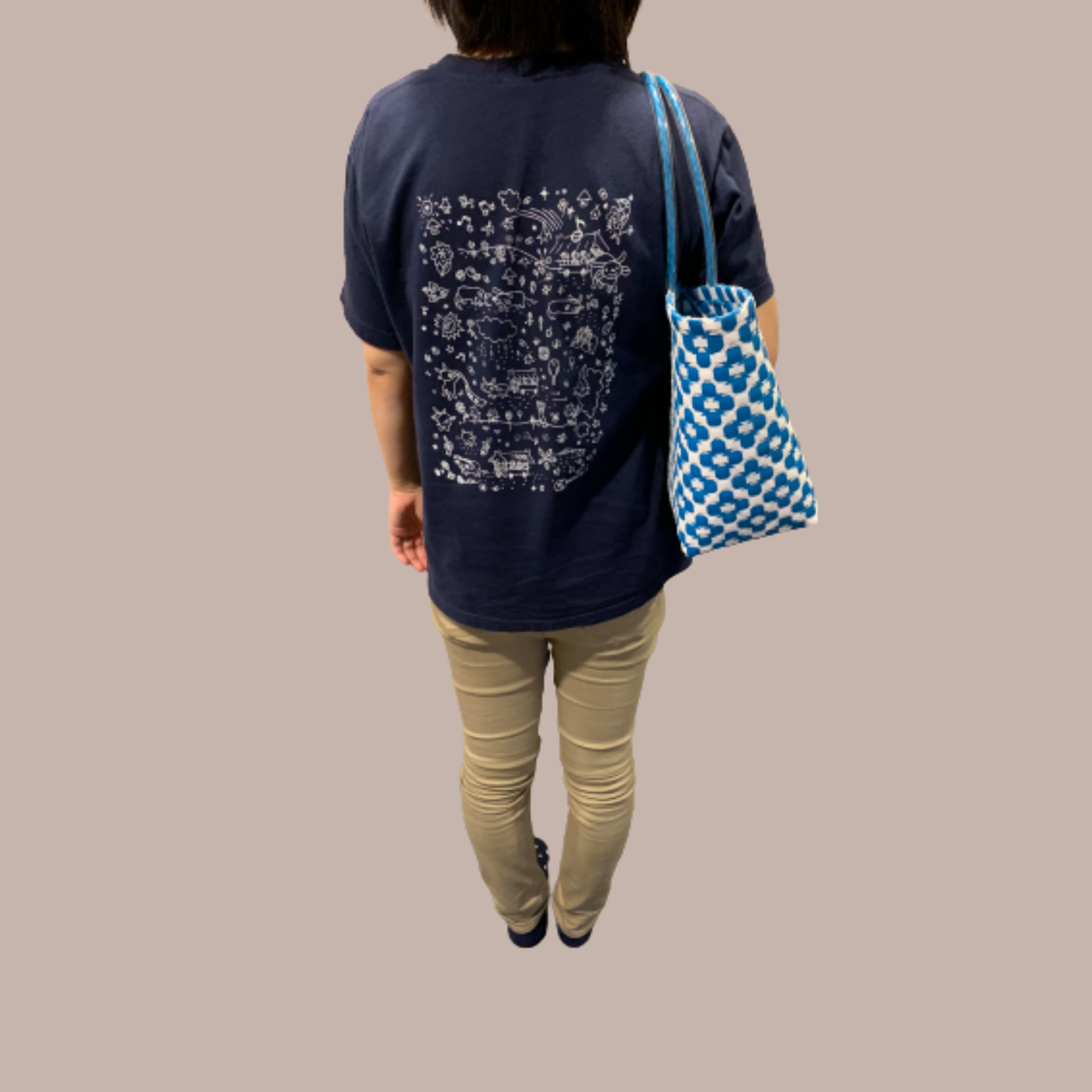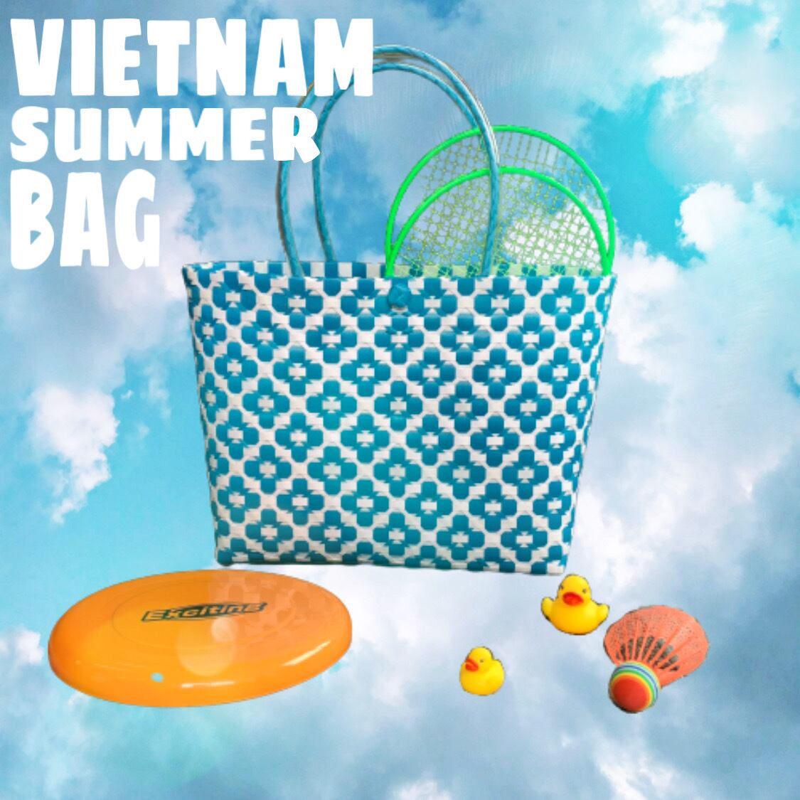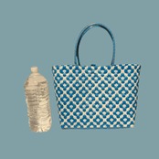 梱包資材のPPバンドを編み込んで作り、軽量で丈夫で、水にも強いバッグです。