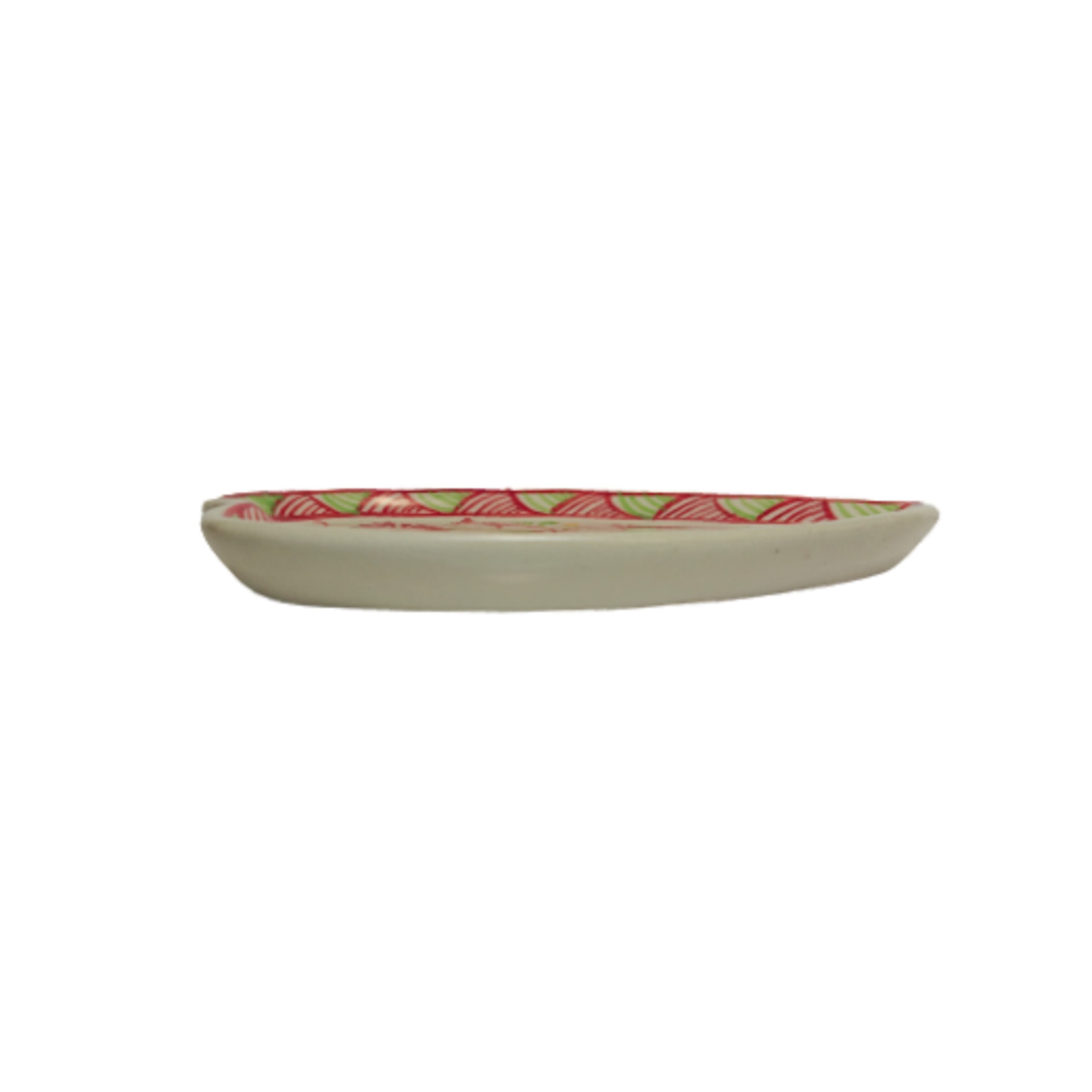 小さめサイズのバッチャン焼きらしい赤い菊の花の模様です。