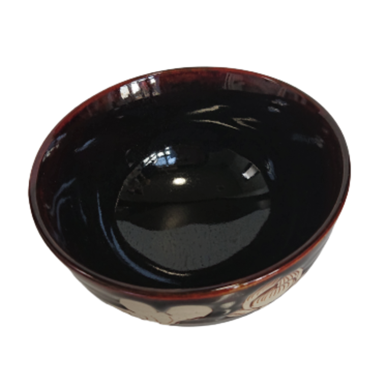 日本でいう飴釉と黒釉の間のようなつやつやで黒色の中にほんのり茶色が見られるのが渋くて素敵です。