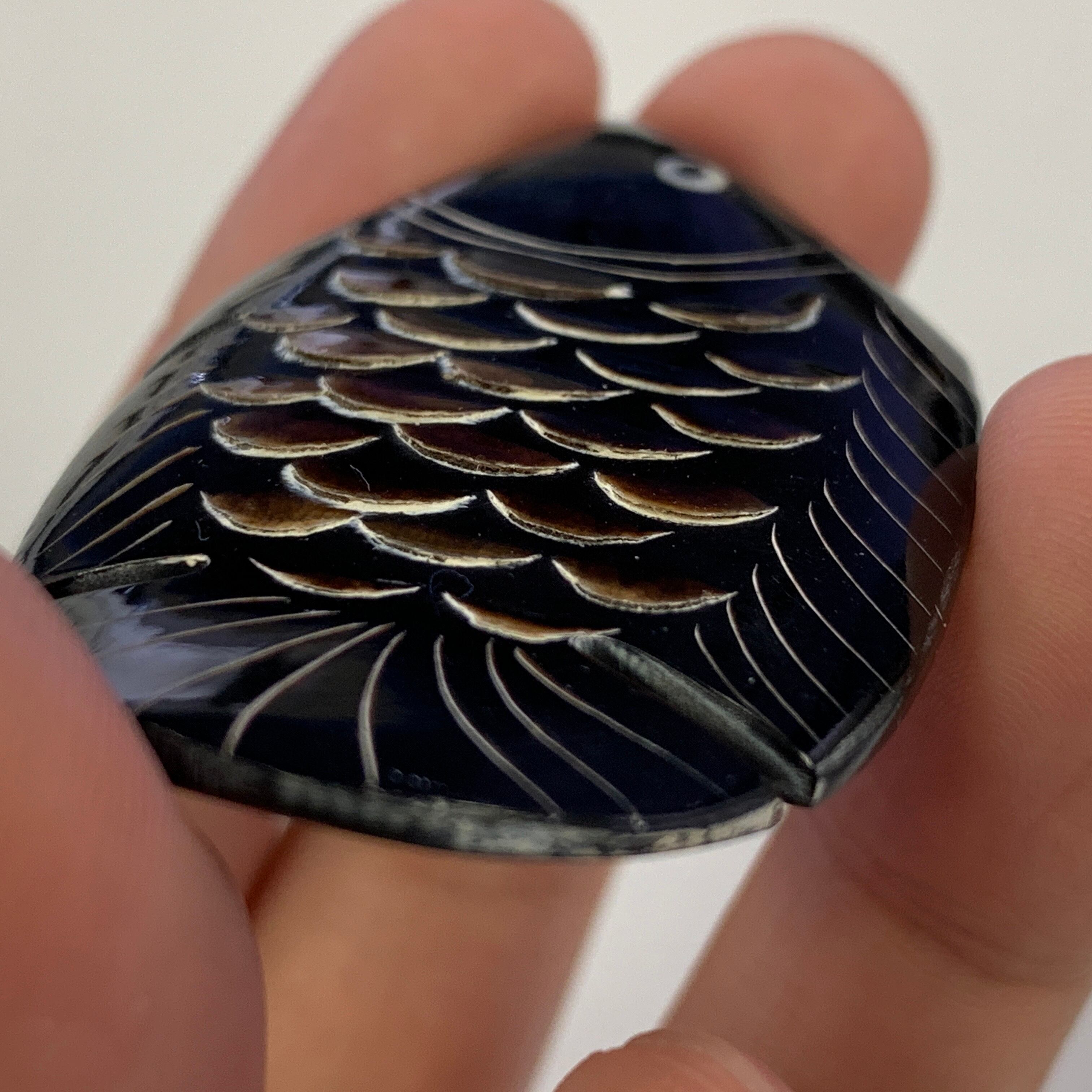 うろこが一枚一枚丁寧に彫られており、茶色くグラデーションになっている部分は薄く削られています。