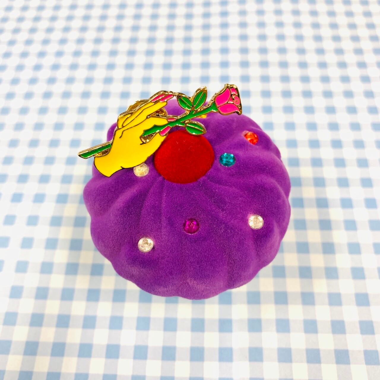 エナメルピン バラの花を持つ手