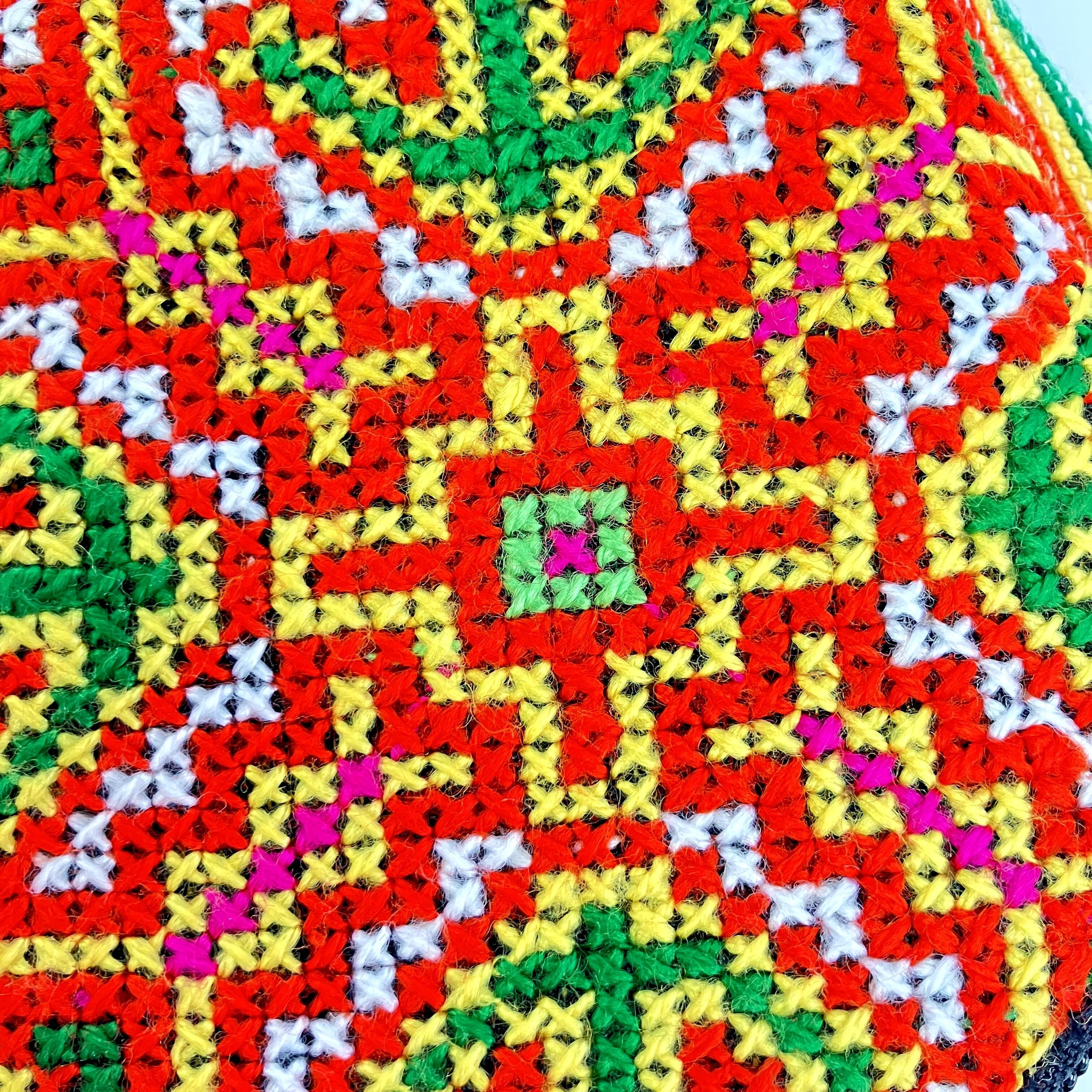 黄色、オレンジ、赤、ピンク、緑など元気が出る色で刺繍されています。